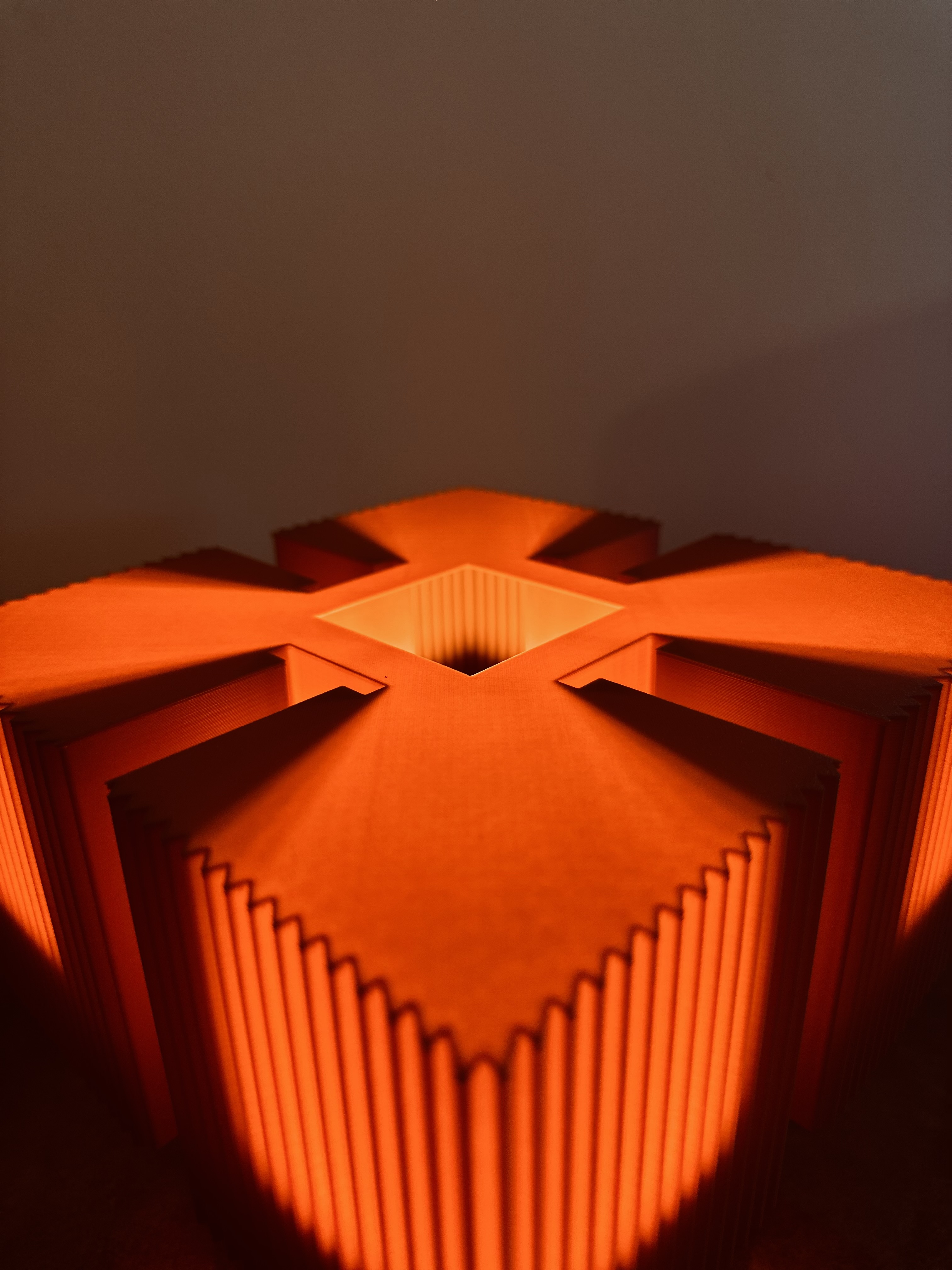 Keskin hatları ve etkileyici renk kombinasyonuyla dikkat çeken Mamba, modern tasarımıyla mekanlarınıza estetik bir dokunuş katar. 3D yazıcı ile PLA malzemesinden üretilmiştir. PLA (Polilaktik Asit), mısır nişastası ve şeker kamışı gibi yenilenebilir bitkisel kaynaklardan elde edilen, biyobozunur ve çevre dostu bir malzemedir. Sürdürülebilir yapısı sayesinde doğaya zarar vermeden estetik ve fonksiyonel aydınlatma çözümleri sunar. Zarif geometrik formu ile her ortamda odak noktası olmaya aday.